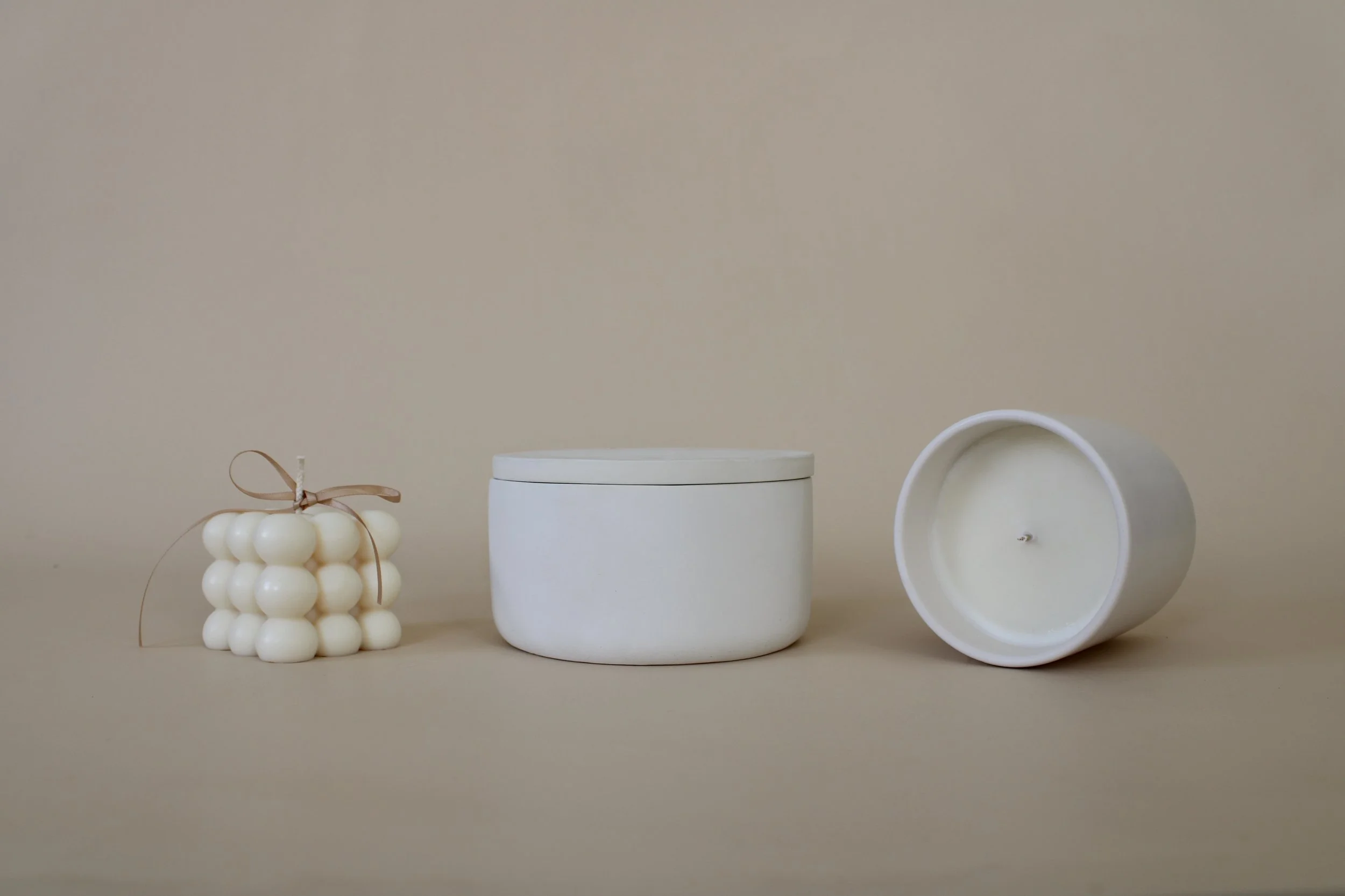 Our container candles are made of 100% soy wax. Our new sculpture collection is also non-toxic and made without the use of harmful paraffin wax. For further FAQs on our sculpture collection please send us an email.